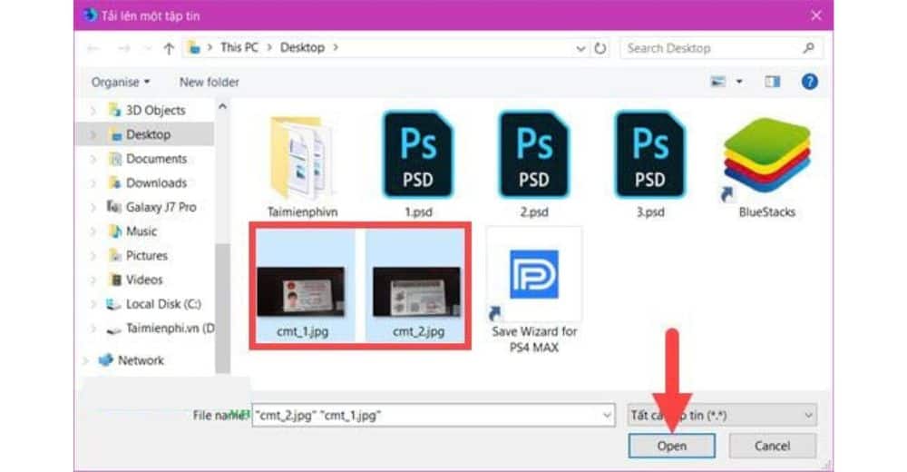 Bước 3: Trỏ đến thư mục có chứa 2 ảnh đó và Open cả 2 ảnh.