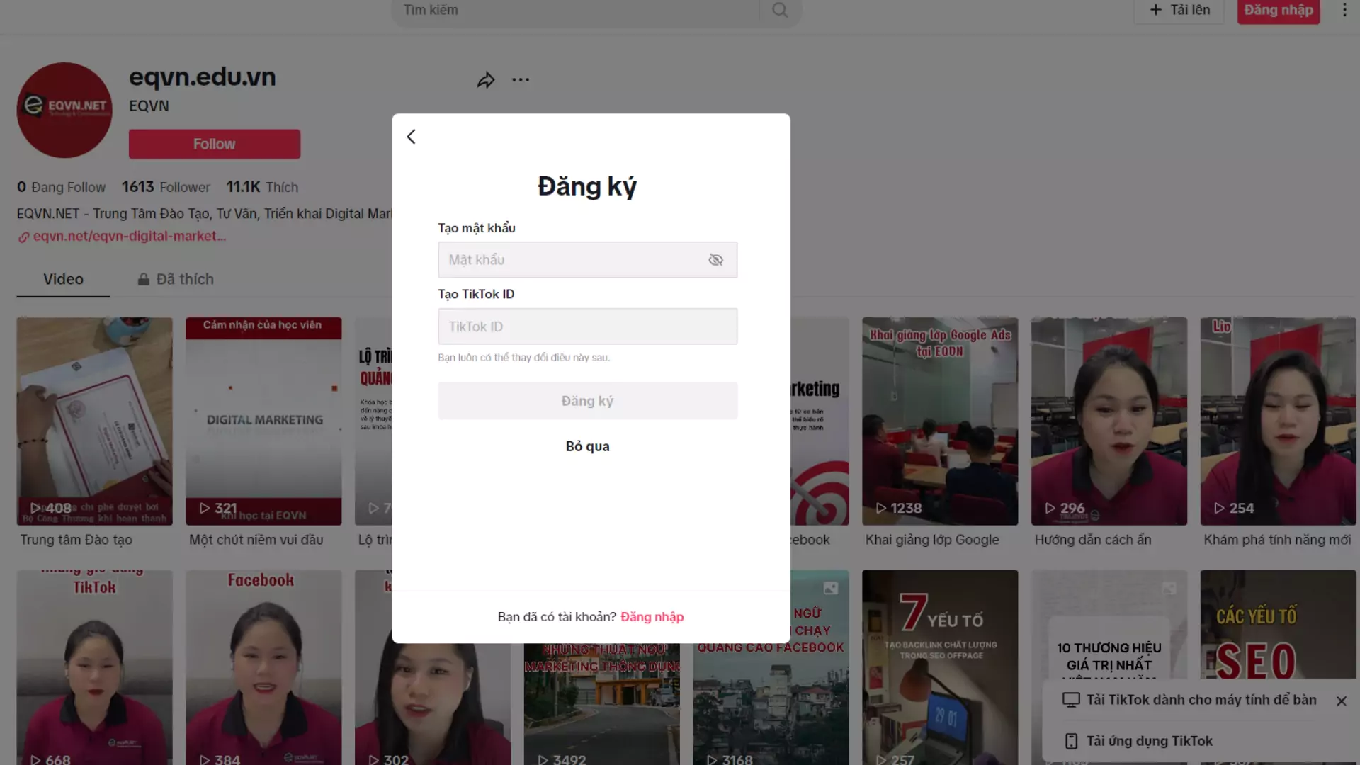 Nếu bạn dự định sử dụng TikTok như một kênh truyền thông chính và tiềm năng của doanh nghiệp thì có thể tham khảo thêm Khóa học Tiếp thị TikTok tại EQVN.