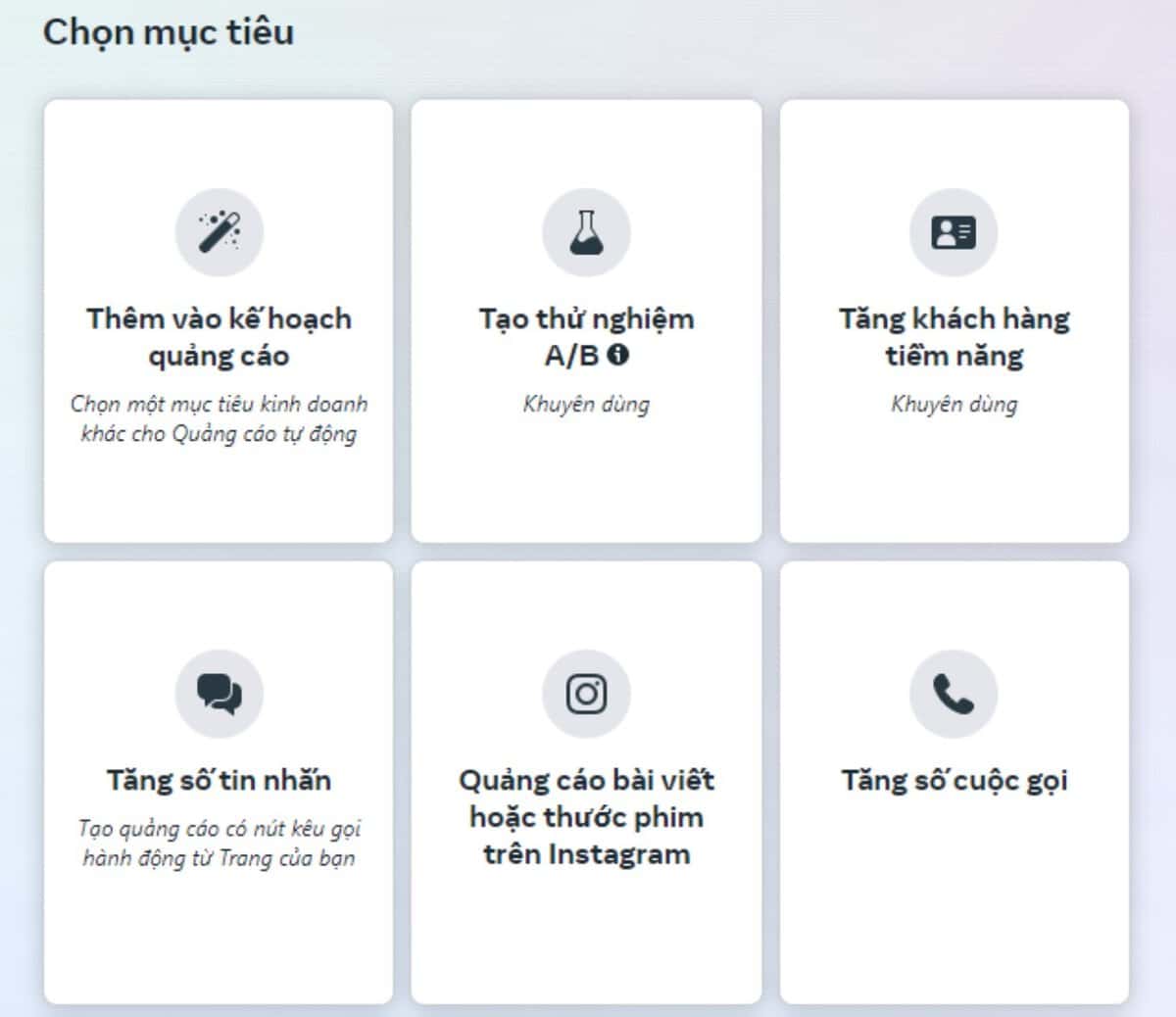 3.1 Chọn mục tiêu chiến dịch quảng cáo Facebook