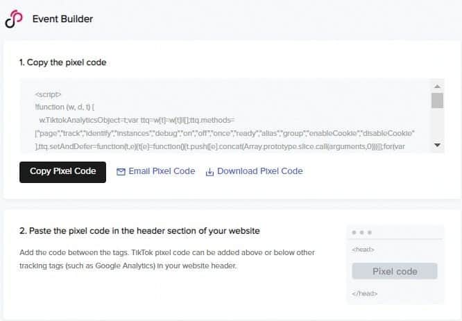 Sau khi hoàn tất giai đoạn, TikTok sẽ cung cấp cho bạn mã code Pixel để cài pixel TikTok vào website. Bạn chỉ cần sao chép mã code này và chèn vào trang web của mình để bắt đầu sử dụng.