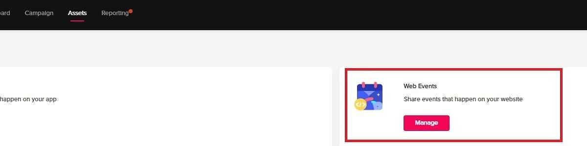 Bước 2: Tại mục Web events (Sự kiện Web), chọn Manage (Quản lý).