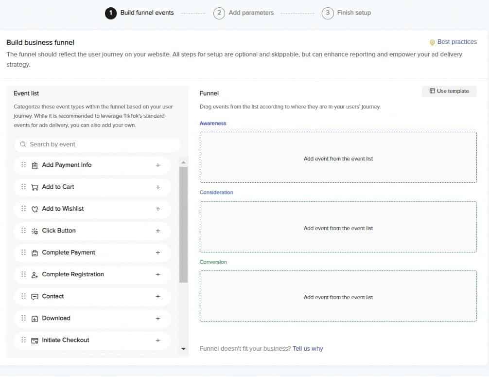 Tính năng quan trọng khi tạo Pixel TikTok là lựa chọn các sự kiện quan trọng để theo dõi. Pixel TikTok cung cấp cho người dùng các sự kiện quan trọng như “Xem sản phẩm”, “Thêm vào giỏ hàng”, “Thanh toán” và rất nhiều tùy chọn khác, bạn hãy chọn các hành vi phù hợp nhất với mục tiêu truyền thông để theo dõi hành vi khách hàng trên website.