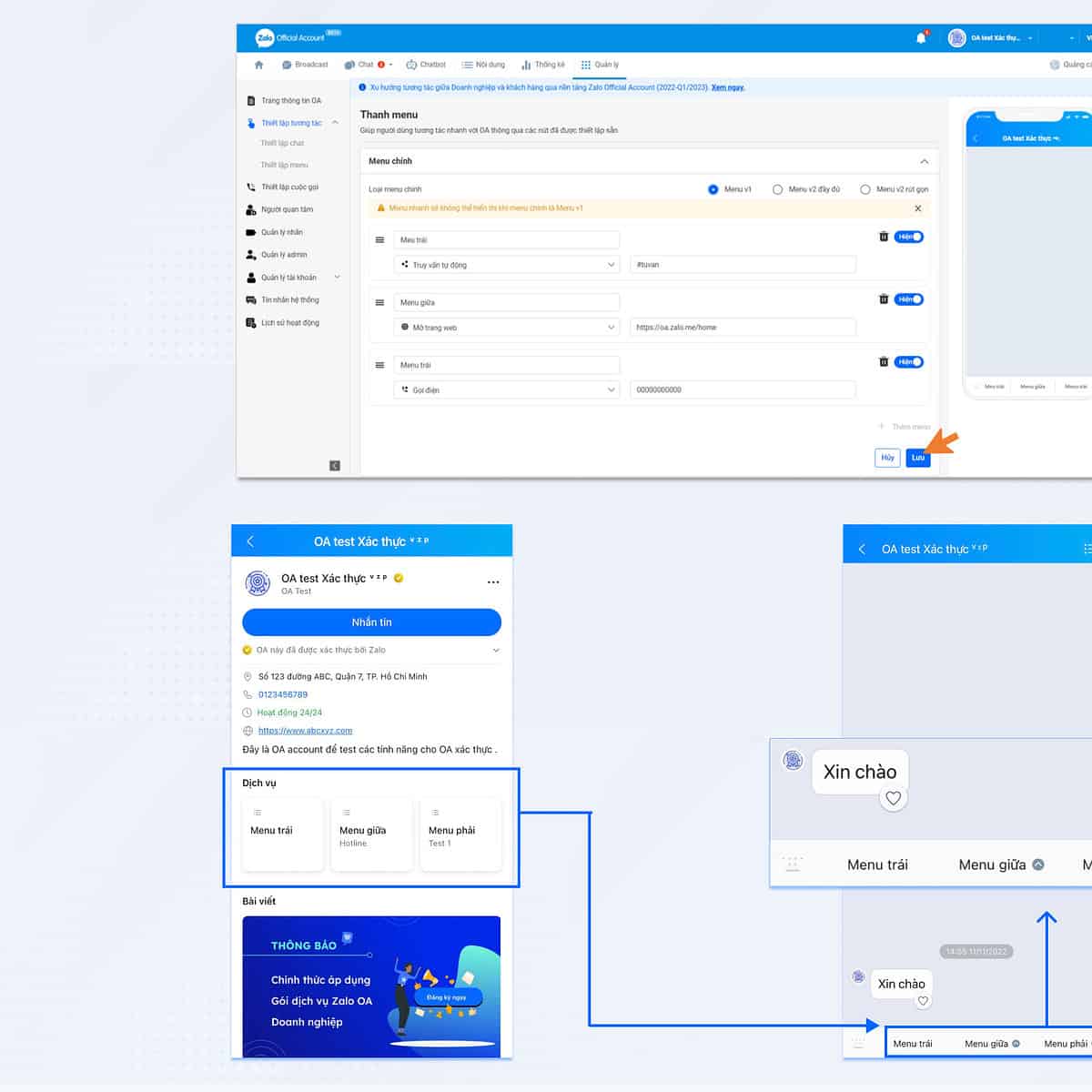 4. Hướng dẫn chi tiết cách thiết lập Menu Zalo OA