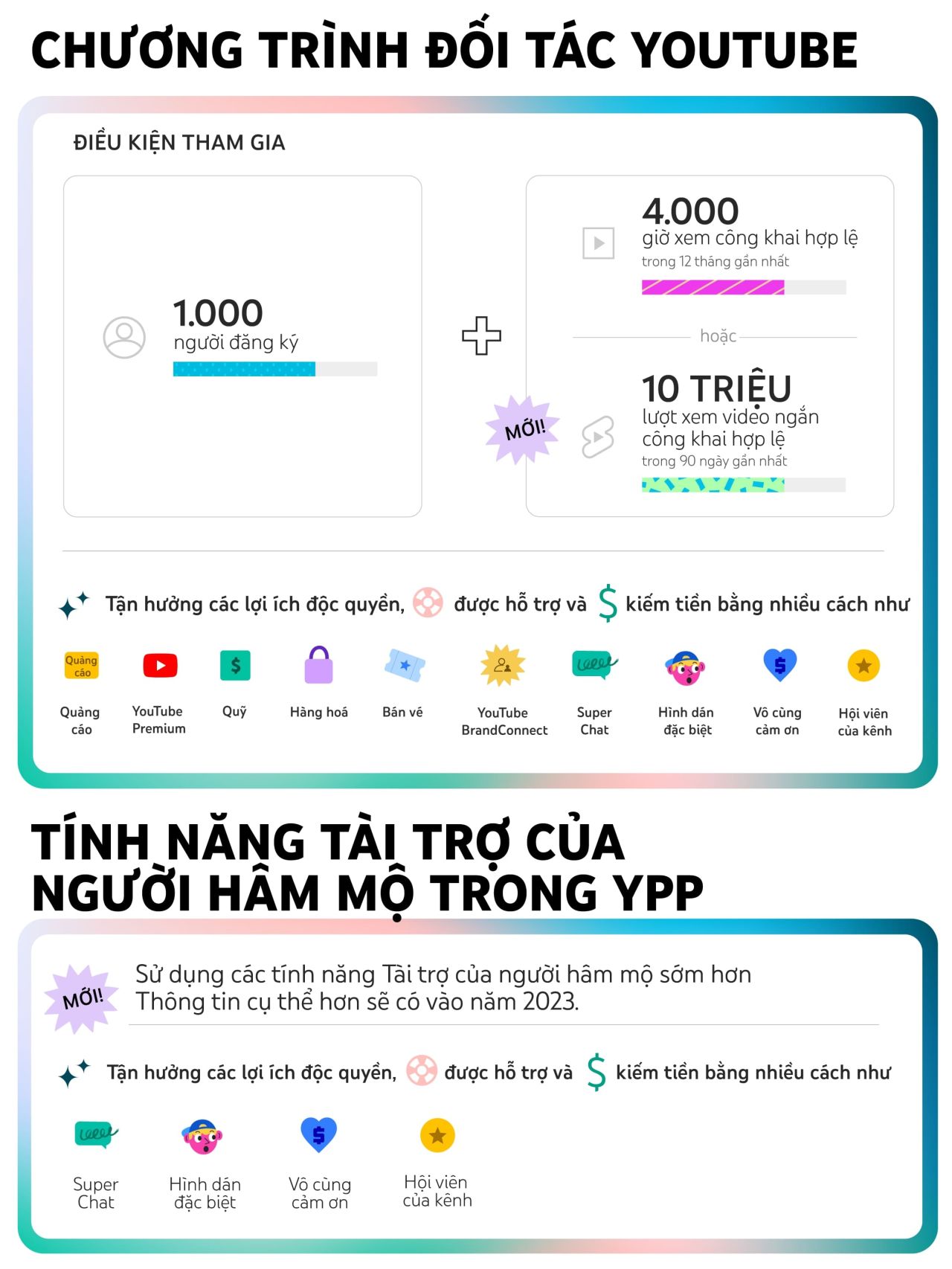 - Sử dụng các tính năng kiếm tiền khác của YouTube: Ngoài quảng cáo, bạn có thể kiếm tiền từ YouTube thông qua các tính năng như Hội viên kênh (Channel Memberships), Super Chat & Super Stickers, Kệ bán hàng (Merch Shelf) và YouTube Premium.