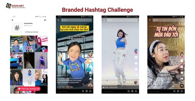 Đây là một trong các hình thức quảng cáo TikTok mang lại mức độ tương tác cao (trung bình 8,5%) và khuyến khích người dùng đưa ra các nội dung sáng tạo từ 1 đoạn hashtag ngắn.