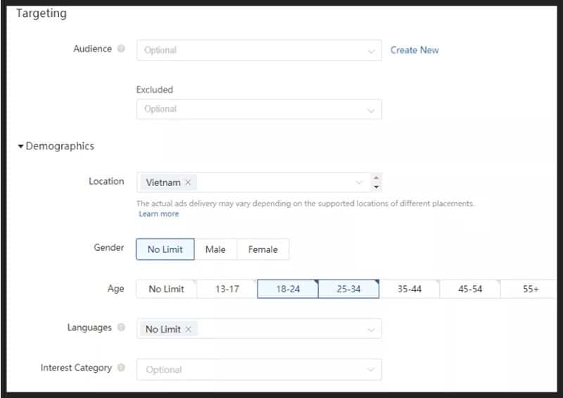 Tùy vào sản phẩm và mục đích chạy quảng cáo TikTok Ads mà bạn sẽ lựa chọn đối tượng khách hàng mục tiêu cho phù hợp với tiêu chí của doanh nghiệp. Sản phẩm càng đặc thù thì thông tin về đối tượng mục tiêu càng phải chi tiết.