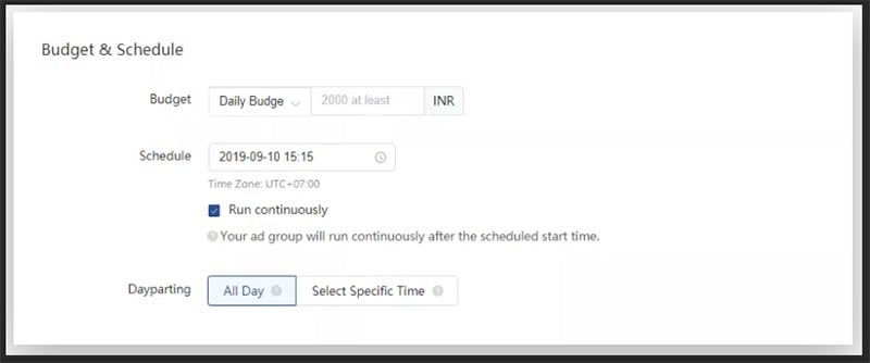 Bước 7: Đặt ngân sách cho nhóm và thiết lập lịch chạy quảng cáo