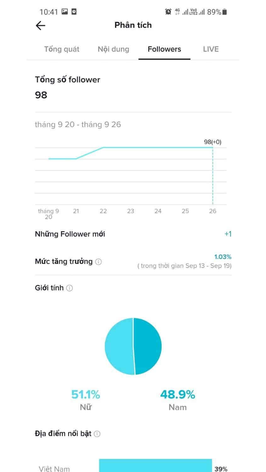 Cho biết số lượng người theo dõi bạn hoặc cả những người đã theo hủy dõi bạn qua biểu đồ tăng giảm số lượng người theo dõi, những video mà người theo dõi bạn đã xem,…Ngoài ra, khi bạn đạt từ 100 followers trở lên thì bạn còn có thể biết về nhân khẩu học của người theo dõi như giới tính, vị trí, thời gian xem của họ,..