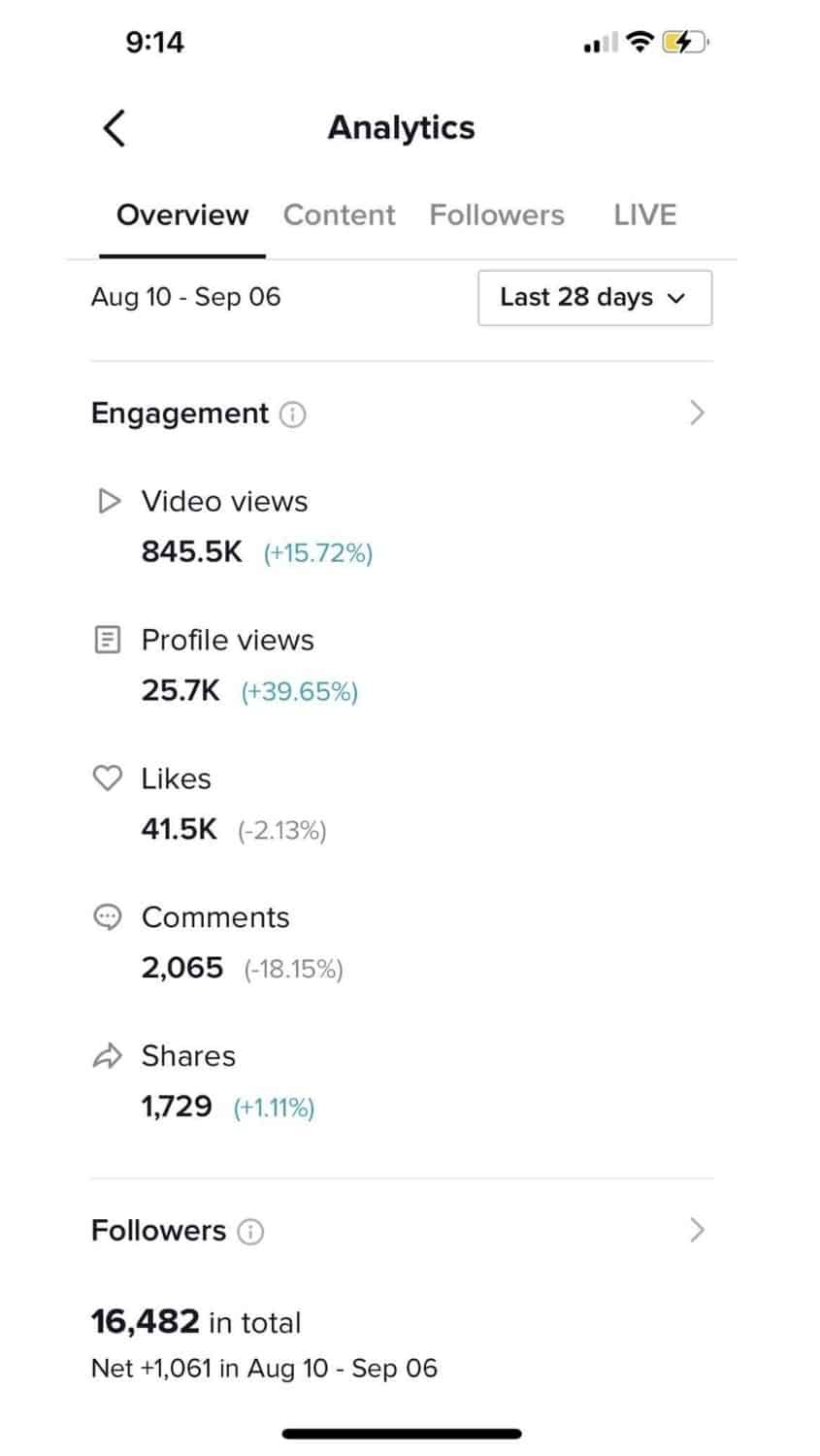 Ở đây, bạn sẽ nhìn thấy tổng quan về số lượng người xem video và hiệu suất nội dung trong tuần gần nhất. Bạn cũng có thể điều chỉnh khoảng thời gian cụ thể để tìm hiểu những biến động trong tài khoản TikTok của mình. Tính năng này cho phép bạn tìm hiểu mức độ tăng trưởng của nội dung trong vòng 7 ngày, 28 ngày hoặc 60 ngày. Từ đó giúp bạn hiểu rõ hơn về đối tượng và tìm ra lưu lượng khán giả tiềm năng của bạn cũng như những thói quen, hành vi của họ để tiếp tục phát triển kênh TikTok của mình.