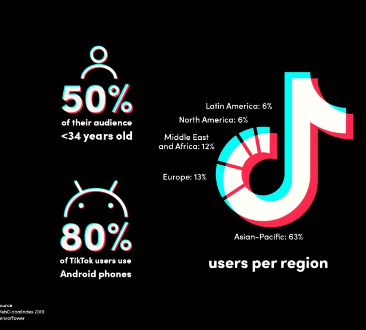 Tại nhiều quốc gia và khu vực, TikTok đã trở thành ứng dụng có thời gian sử dụng của người dùng cao nhất. Thống kê cho thấy người dùng TikTok ở Mỹ dành trung bình 95 phút cho video ngắn mỗi ngày, nhiều hơn hẳn việc vào Twitter, Facebook, Instagram với thời gian hoạt động chỉ khoảng 30 phút mỗi ngày.
