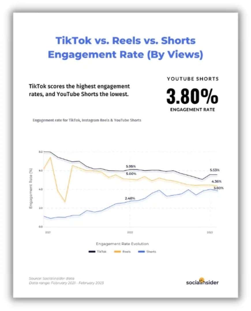 So với YouTube Shorts, nơi mà tỷ lệ tương tác trung bình khoảng 3,80%, và Reels của Instagram với tỷ lệ tương tác trung bình là 4,36%, TikTok tự hào nổi bật với mức độ tương tác vượt trội, đạt mức trung bình cao hơn ở mức 4,36%. Điều này không chỉ thể hiện sức hấp dẫn mạnh mẽ của TikTok đối với người xem mà còn là kết quả của cộng đồng tích cực, sáng tạo và sẵn sàng tham gia của người dùng trên nền tảng này.