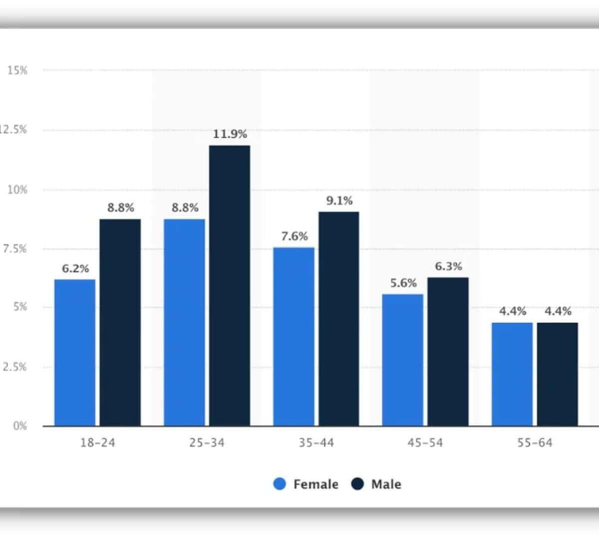 Ngược lại, TikTok chủ yếu tập trung vào thế hệ trẻ, tạo nên một nhóm đối tượng mục tiêu đặc biệt cho doanh nghiệp. Với độ tuổi 18-24 chiếm 15% và độ tuổi 25-34 chiếm 20,7% người sử dụng TikTok, nền tảng này là một lựa chọn hấp dẫn đối với những doanh nghiệp muốn tận dụng nhóm đối tượng năng động và sáng tạo này.