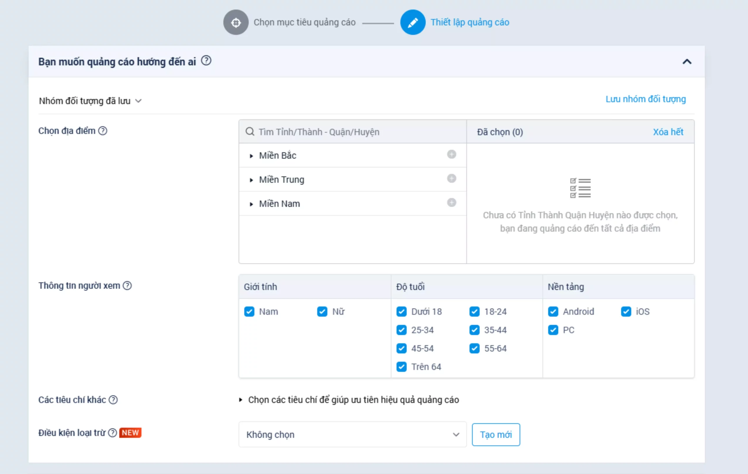 Sau khi đã xác định được mục tiêu quảng cáo, bước tiếp theo là phân khúc đối tượng mục tiêu. Tức là bạn cần phải xác định ai là khách hàng tiềm năng của mình. Các yếu tố để phân khúc đối tượng có thể bao gồm: