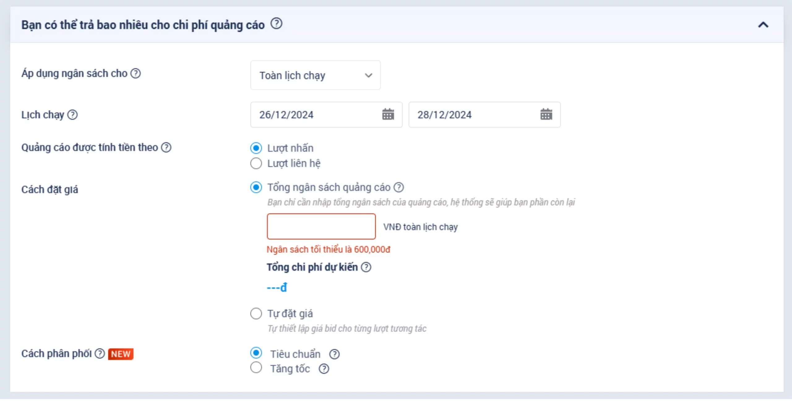 Đặt Ngân Sách Quảng Cáo Không Hợp Lý