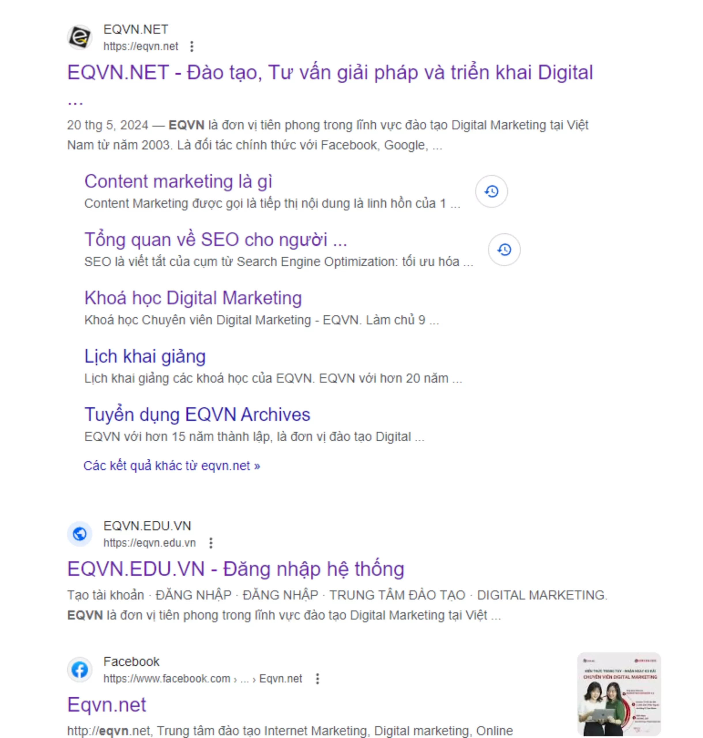 EQVN là đơn vị tiên phong trong lĩnh vực đào tạo Digital Marketing tại Việt Nam từ năm 2003. Là đối tác chính thức với Facebook, Google, Zalo và các đối khác trong ngành