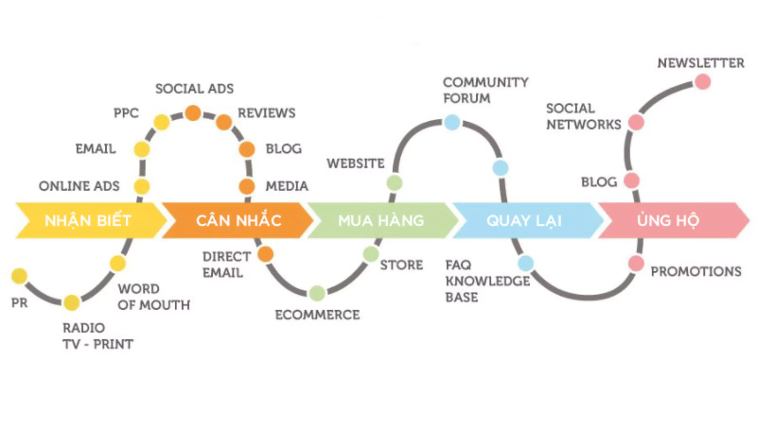 - Không hoàn thành triệt để hành trình khách hàng, bạn nên đảm bảo rằng nội dung phải hàm chứa chức năng “từ kêu gọi đến hành động” thích hợp với từng bối cảnh của hành trình khách hàng.