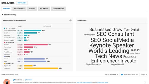 Bạn thậm chí có thể tạo đối tượng dựa trên các thương hiệu mà đối tượng đó đã đề cập, có nghĩa là bạn có thể tìm ra ai nói về đối thủ cạnh tranh của bạn và những người nào đang hoạt động trong ngành của bạn.