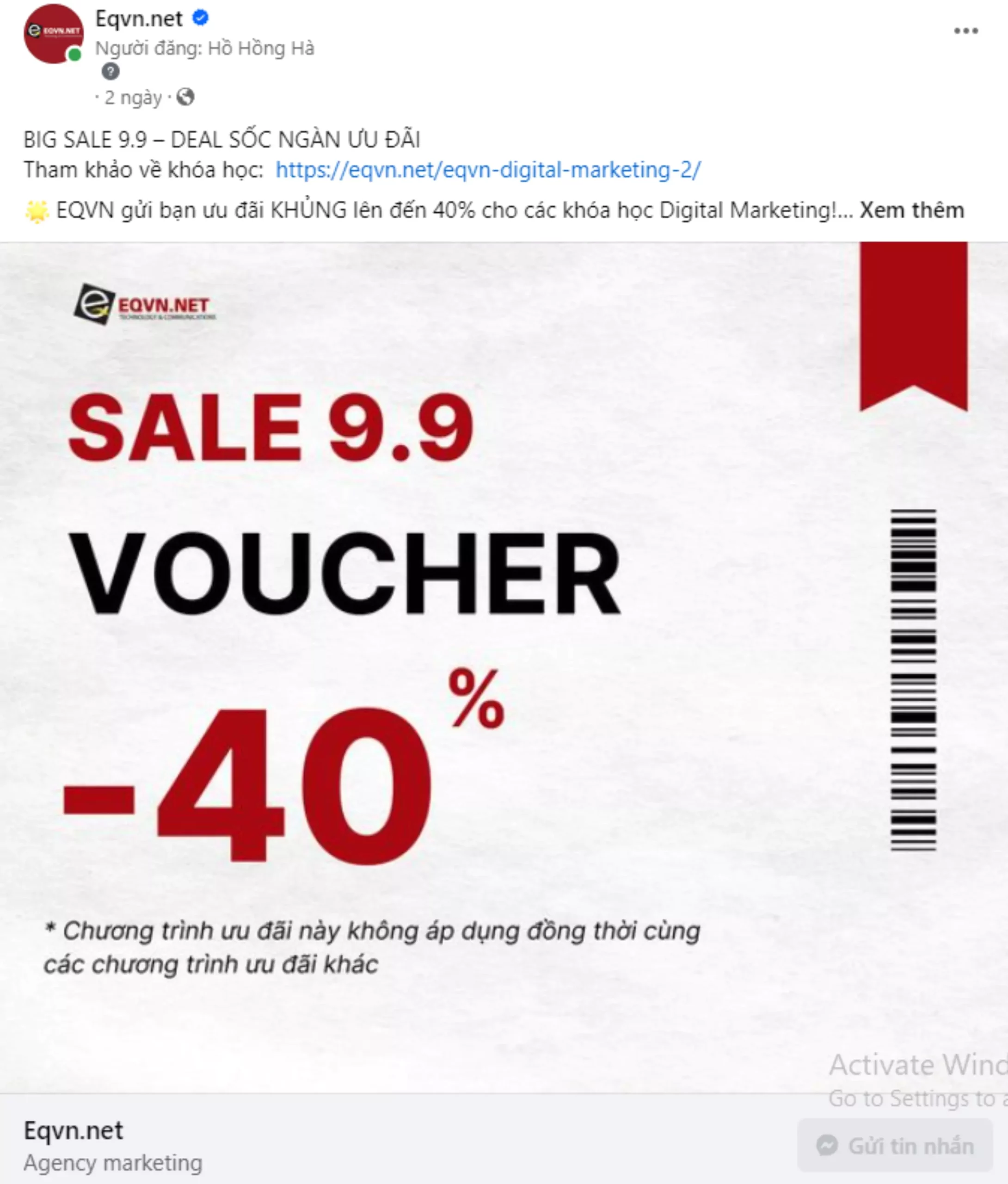 Ngoài ra, nếu muốn tìm hiểu nhiều hơn về các đặc trưng khi hoạt động trên Facebook, bạn cũng có thể tham khảo qua khóa học Facebook Marketing tại EQVN. Với bộ tài liệu được cập nhật mới nhất về toàn bộ các đặc điểm nổi bật khi kinh doanh cho bất kỳ người dùng nào, cũng như cách thức triển khai quảng cáo nhằm tăng độ nhận diện thương hiệu trên nền tảng Facebook