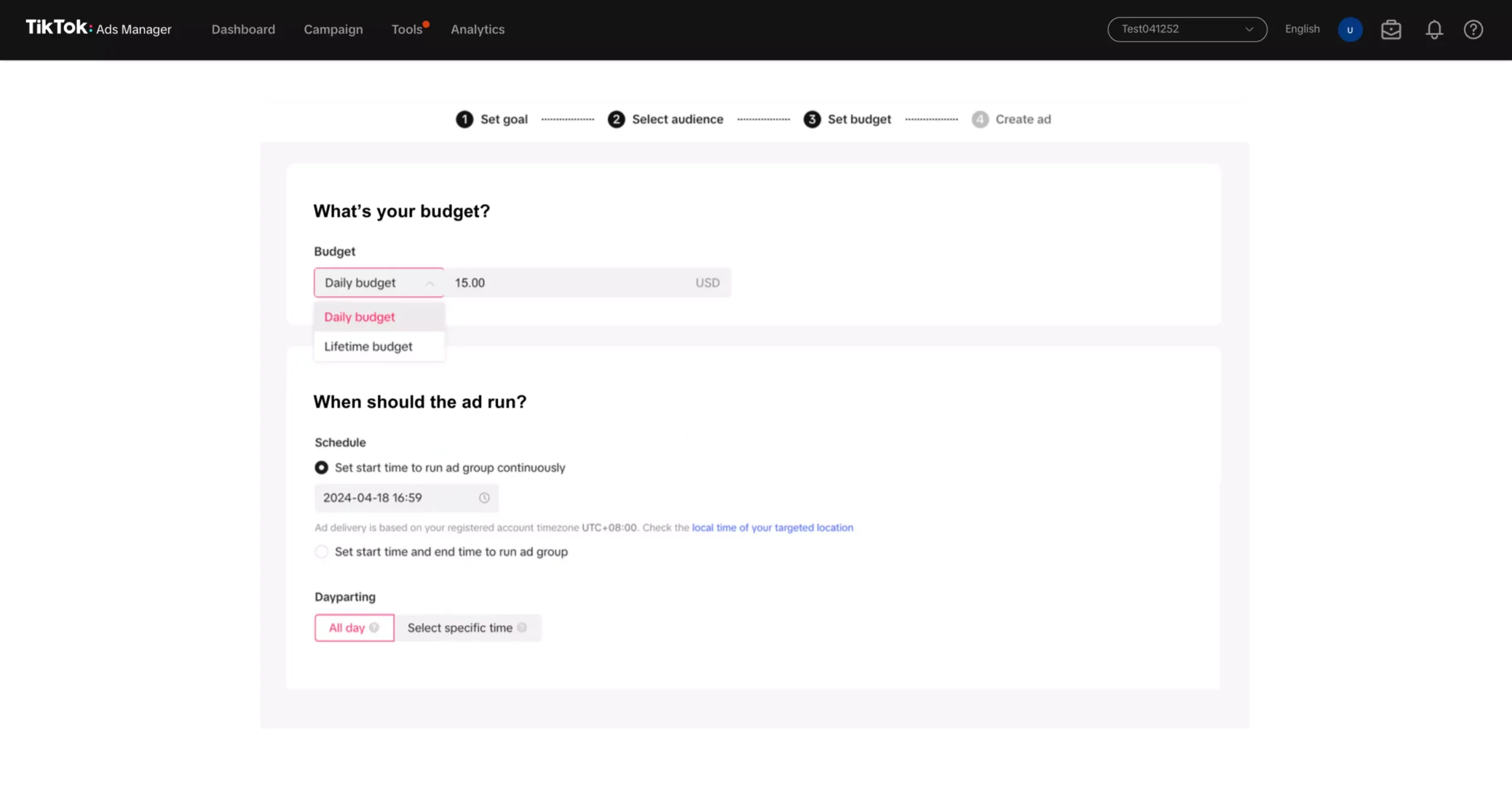 - Thiết lập ngân sách và thời gian chạy: Sau khi chọn mục tiêu, bạn cần thiết lập ngân sách và thời gian chạy chiến dịch, đảm bảo quảng cáo sẽ được phân phối theo đúng kế hoạch.