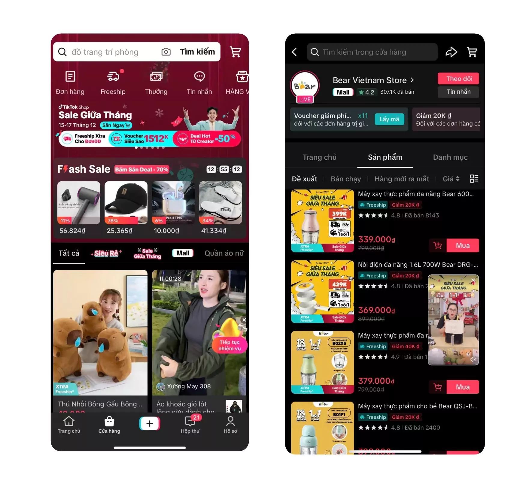 - Trải nghiệm người dùng: TikTok Shop mang lại trải nghiệm mua sắm giải trí, nơi người dùng có thể khám phá sản phẩm thông qua các nội dung sáng tạo và thú vị. Ngược lại, các sàn TMĐT truyền thống thường tập trung vào việc tối ưu hóa UI/UX để giúp người dùng dễ dàng tìm kiếm và mua sắm sản phẩm.
