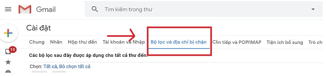 Bước 2: Nhấn chuột chọn “Bộ lọc và địa chỉ bị chặn”.