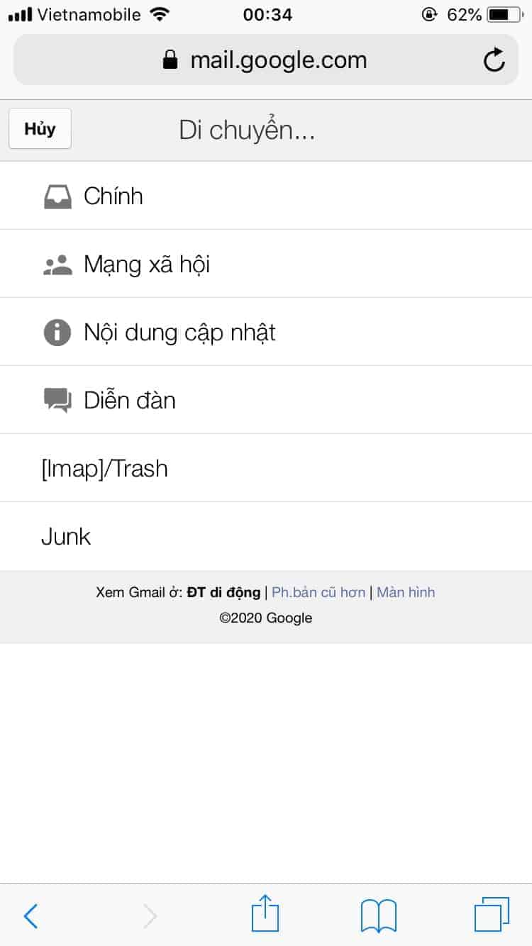 Bước 4: Chọn danh mục “Chính” là nơi email di chuyển tới