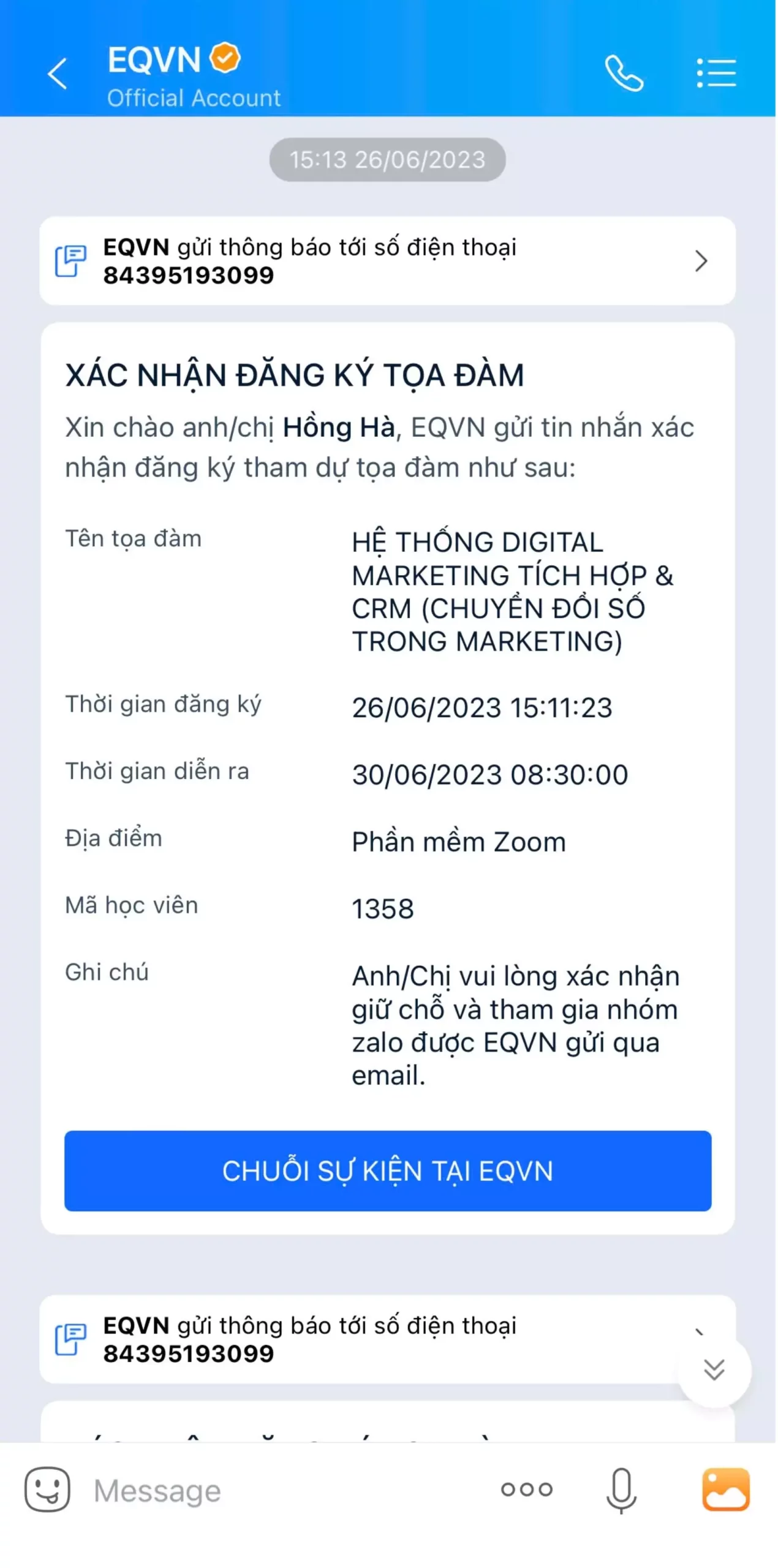 Nếu bạn vẫn chưa biết bắt đầu quá trình Marketing với Zalo Official Account như thế nào. EQVN – Trung tâm đào tạo Digital Marketing sẽ cung cấp cho bạn giải pháp với khóa học Zalo.