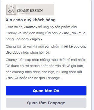 Bạn có thể tùy biến nội dung gửi đến khách hàng, bằng hàng trăm ký tự và định dạng không giới hạn (nội dung dạng bảng, nội dung chứa ảnh, nút CTA…). Điều này tiện lợi và đạt hiệu quả cao hơn nhiều so với chăm sóc khách hàng qua SMS thông thường.